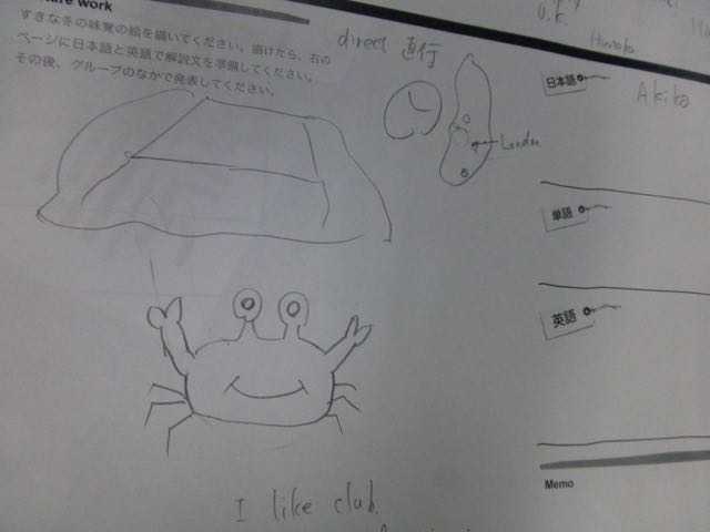 トピックは「お昼ご飯」と「冬の味覚」でした。