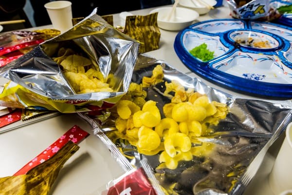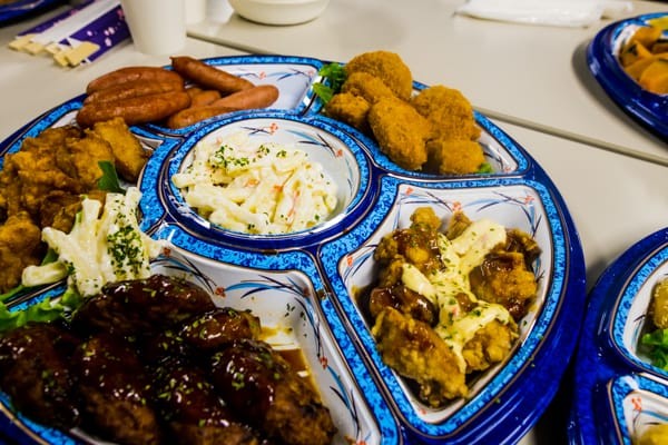 オードブルやおにぎり、スナック、デザートが出ましたよ。